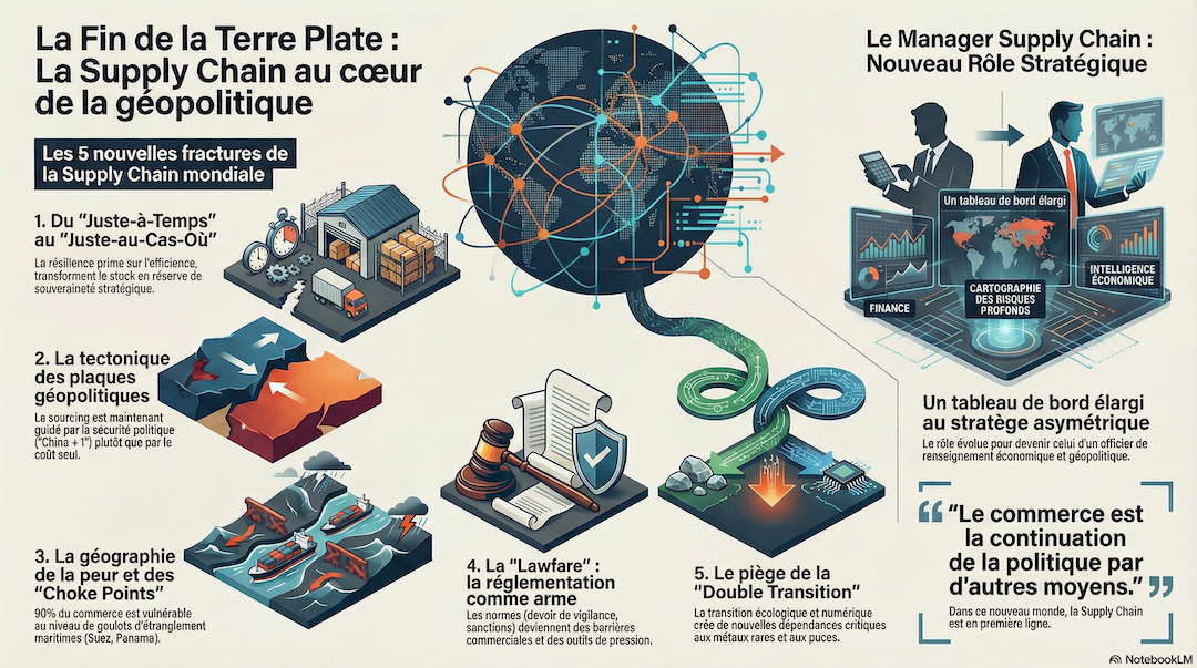 Vingt ans plus tard, le réveil est brutal. La Terre n’est plus plate ; elle est fracturée. De l’Ukraine à Taiwan, en passant par la Mer Rouge, la Supply Chain a cessé d’être un « tuyau » neutre pour devenir le levier principal de la puissance des États.